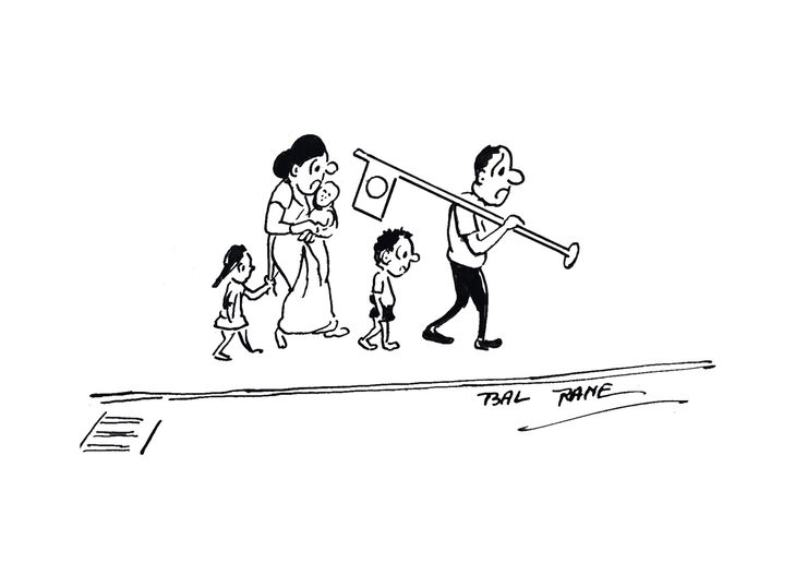 Bal Rane had a dedicated and methodical approach to his work. Every day after reading the newspaper, he would set out to sketch 3 to 4 cartoons on social and political situations that warranted reader’s attention, and then mail it to the newspaper in Pune from Mumbai via post. He often fervently poured over the drawings of renowned cartoonists, studying, dissecting, and comparing them to gain thorough insight.